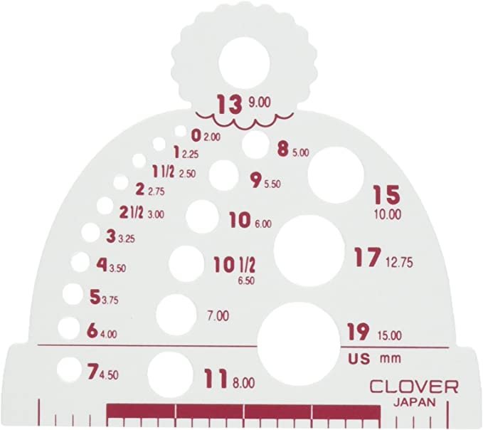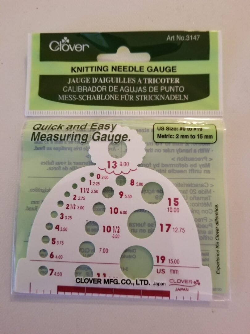 Has the size of your knitting needles worn off? Don’t throw them away. Use the knitting needle size gauge to find out the size of your needles so you can continue to use them.