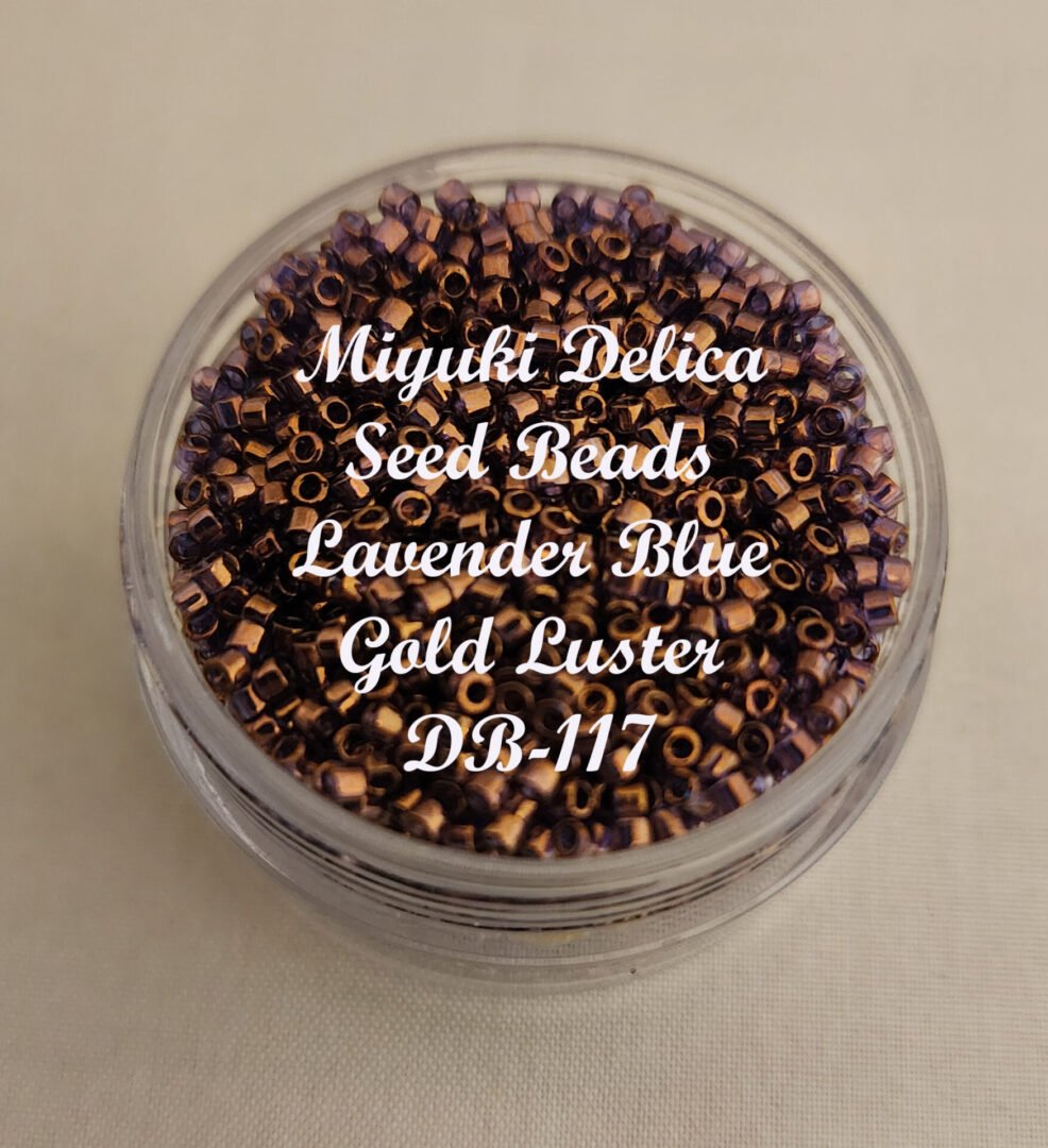 The Miyuki Delica Beads -Lavender Blue Gold Luster (DB117) is a matte opaque seed bead, size 11/0. You will receive 7.2 grams contained in a 2″ jewelry tube. The Delica seed beads are cylinder shaped Japanese glass beads created by Miyuki. Miyuki is known for their precise size and color consistency. Delicas have thin walls and large holes relative to their size which allows multiple threads to pass through at once, making them ideal for detailed projects like bead weaving or looming. The 11/0 size is the most popular. It is 1.6 mm x 1.5 mm with a hole size of .8 mm, There are about 20 beads per inch The beads come packaged in a 2″ tube.