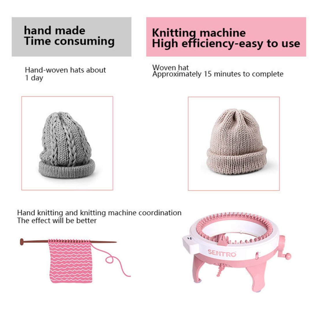 We also sell the Sentro Knitting machine with 40 pins. This machine is used to make smaller sizes of hats, scarves, etc. Click here to learn more.
