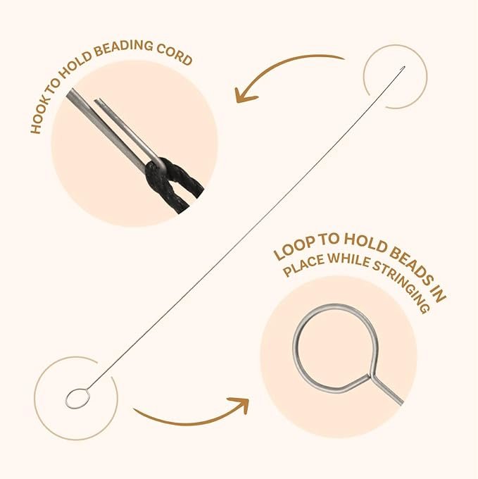 - EFFICIENT HOOK END: The hook on the opposite end of the needle easily attaches to any type of bead cord, elastic, silk, or wire, allowing for effortless transfer of beads onto your chosen thread without tangling or slipping.